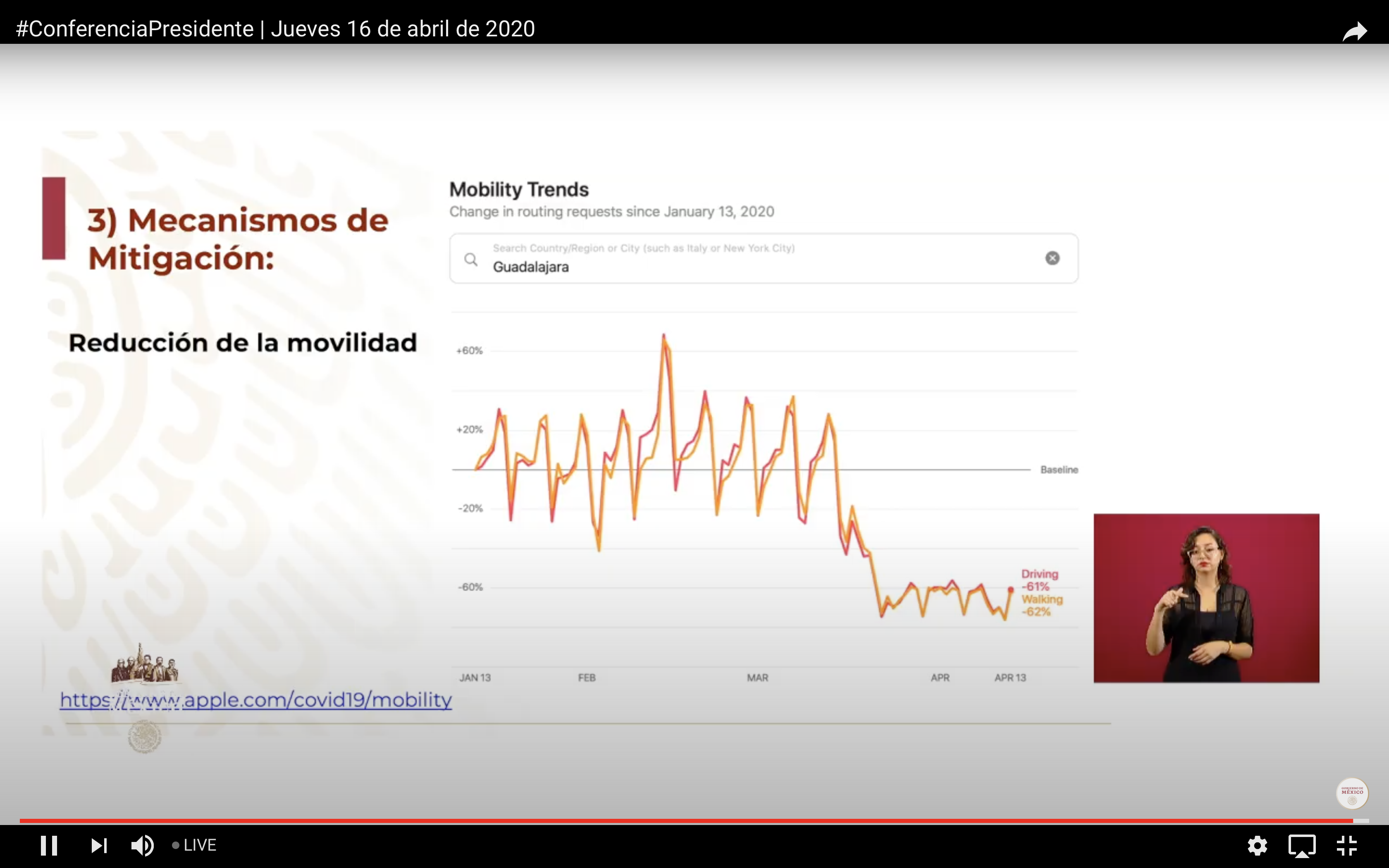 En México 🇲🇽, en lo general estamos haciendo bien la chamba, coinciden los datos de Apple, Facebook, Twitter y gobierno. En lo particular, Ciudad de México presenta una mejor reducción en la movilidad que Guadalajara y que Tijuana (siendo Tijuana la que peor reducción presenta).